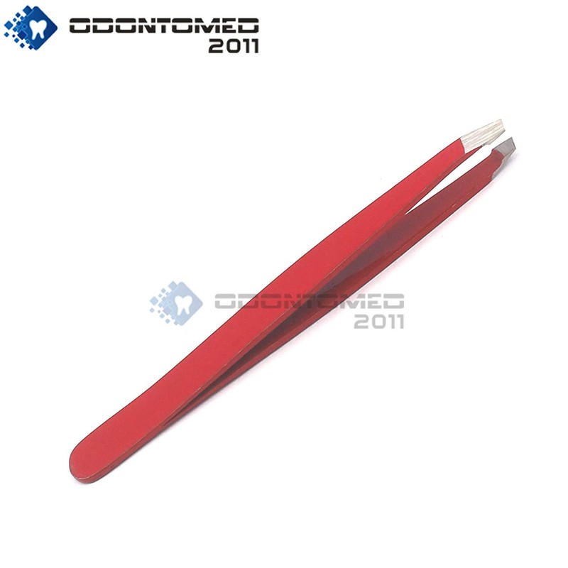 OdontoMed2011® Professional Tweezer Pack- 4 Tweezers Set- Ingrown Hair Remover Treatment. Premium Eyebrow Shaper. With Protective Case, Slanted And Pointed Eyebrow Tweezer Set (Red)