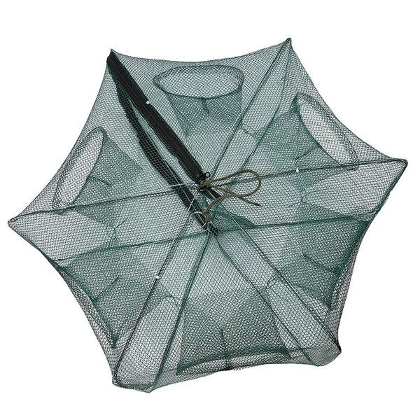 Odorkle Fishing Trap, Durable Nylon Foldable Automatic Fishing Net Shrimp Crab Cage Fishing Accessories (6 Hole)
