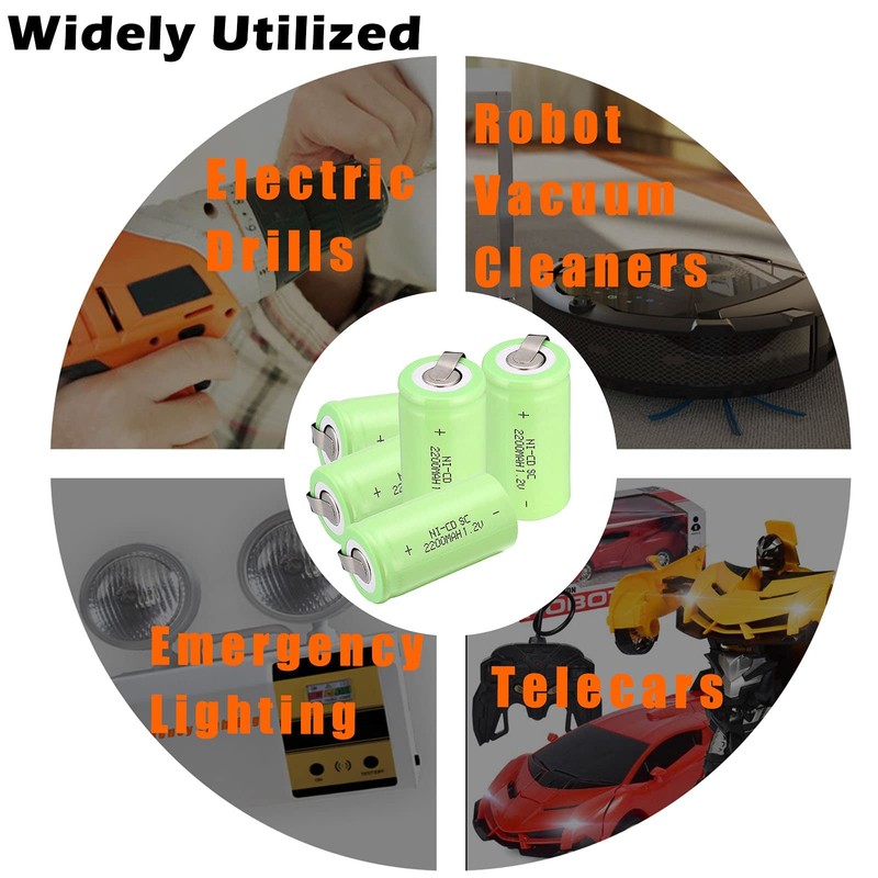 • EXCELLENT QUALITY. This SC battery is made of nickel and cadmium chemicals with output voltage of 1.2V and current of 2200 mAh. Sustainable use of high quality batteries.
