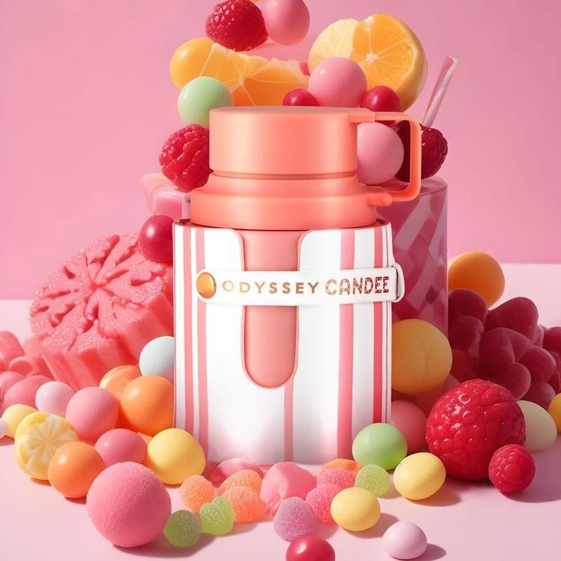 Odyssey Candee by Armaf, launched in 2024, is a new and feminine fragrance, belonging to a fruity and floral olfactory family. From its first notes, this fragrance stands out for its vibrant sweetness, with a fresh and juicy opening of strawberry, raspberry, peach and bergamot, complemented by a floral touch of geranium.
