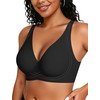 OEAK Womens Comfortable Deep V Bras Wireless Push Up Seamless Full Coverage Bralettes Supportive Bra Raceback Tshirt Bras Black,2XL
