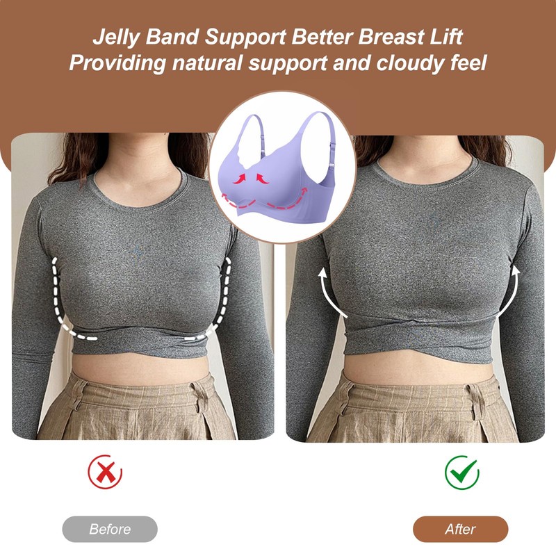 - Soft Supportive bras with Jelly Band - OEAK Push Up bras feature a bigger hugging “W” shape and innovative 3D support technology formed by the liquid jelly band provides 360°round support for your breasts, creating a fully and natural-looking chest without the discomfort of a traditional underwire bra. The wireless bra with removable pads adds to the comfort level, ensuring a buttery soft feeling, and maximum comfort all day long.
