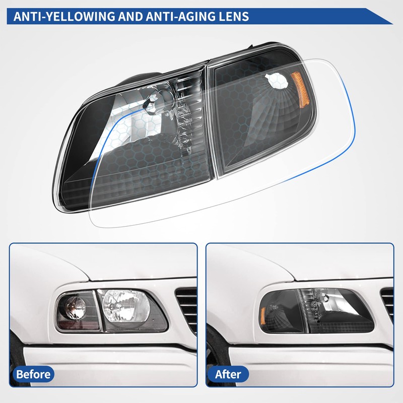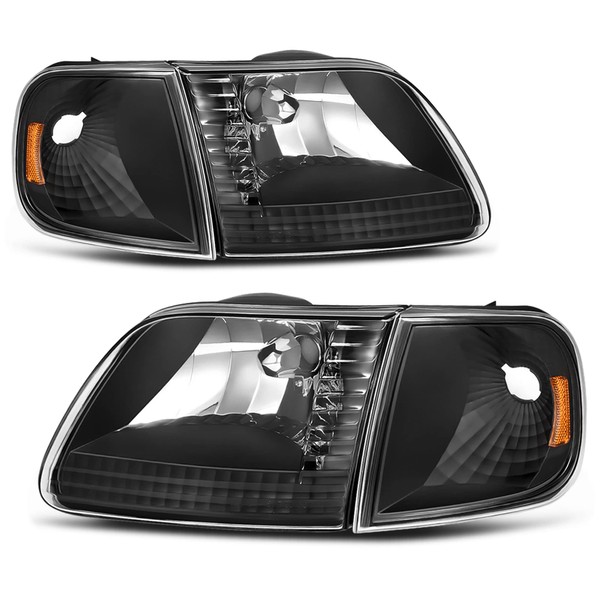 oEdRo Halogen Headlights Assembly w/Corner Parking Set Compatible with 1997-2003 Ford F150 / Expedition Headlamps Black Housing Driver and Passenger