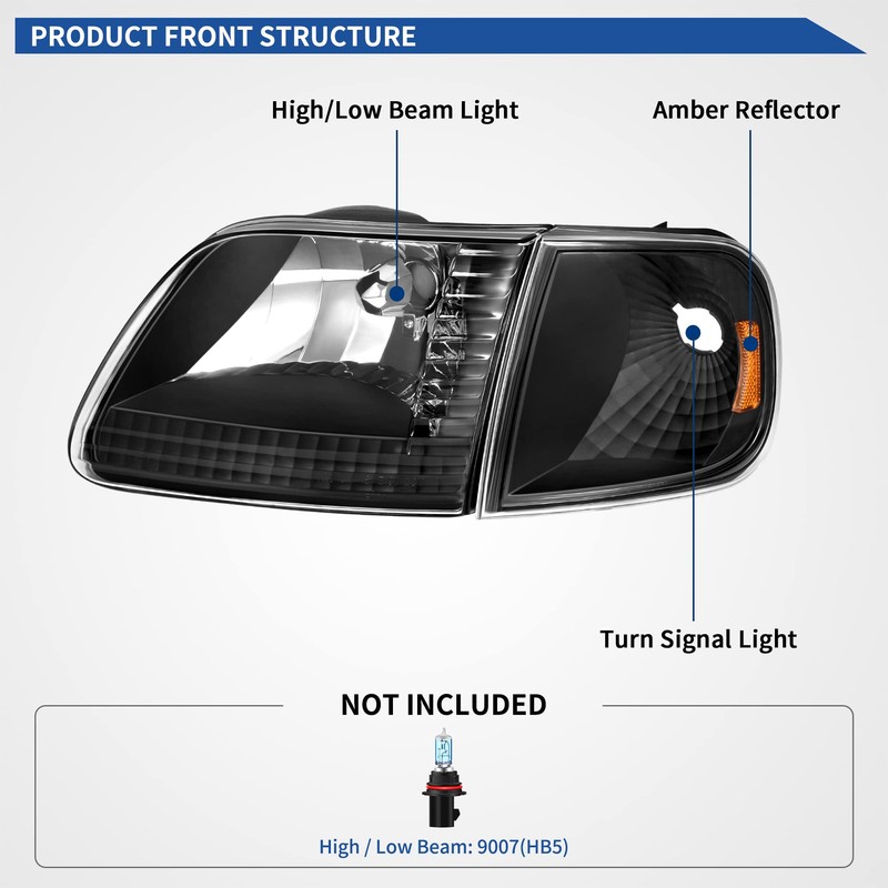 - Vehicle Fitment - These OEDRO headlights are compatible with 1997-2003 Ford F-150 / 2004 Ford F-150 Heritage / 1997-2002 Ford Expedition; Not fit on 1997 F-150 production dates between 06/01/1996 to 07/01/1996; high/low beam bulb type: 9007 (Halogen Bulbs are not included)