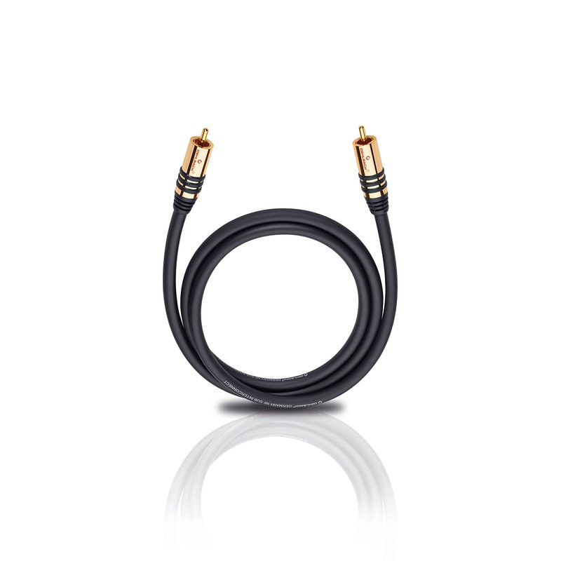 Preassembled subwoofer cable for connecting active subwoofers to home-cinema systems! Just the thing for connecting active subwoofers to AV receivers. The inner conductor´s large diameter and the coaxial design mean that this Oehlbach cable is particularly suitable for the transmission of low frequencies. The inner conductor made from oxygen-free OFC copper also guarantees absolutely precise and powerful bass reproduction. The effective copper-braid shielding eliminates any occurring signal interference and guarantees perfect transmission quality. The subwoofer cable is extremely flexible in spite of its being very robust and also comes with solid plugs that are responsible for creating the optimum contact.