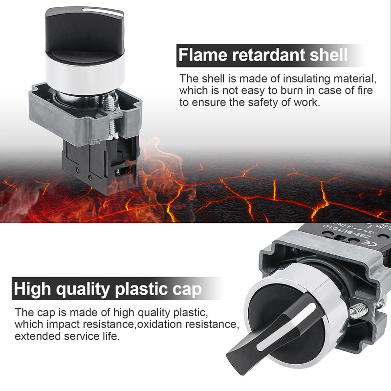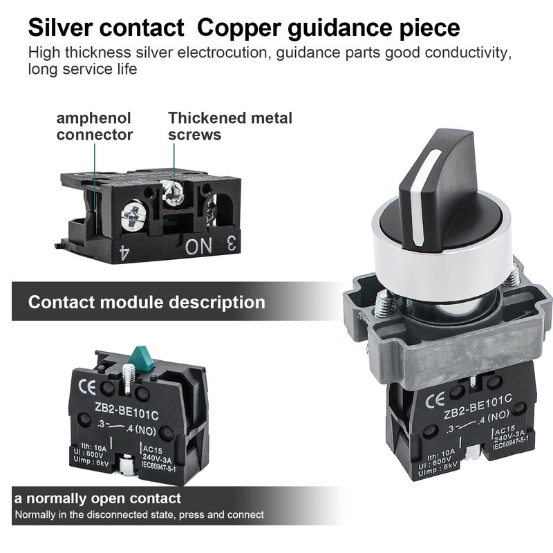 - 【High quality】: The selector switch is designed with a metal head for excellent durability and reliability, and can withstand currents up to 10A and voltages up to 600V. In addition, it also has a 6kV impact voltage, to ensure long-term use in harsh environments.