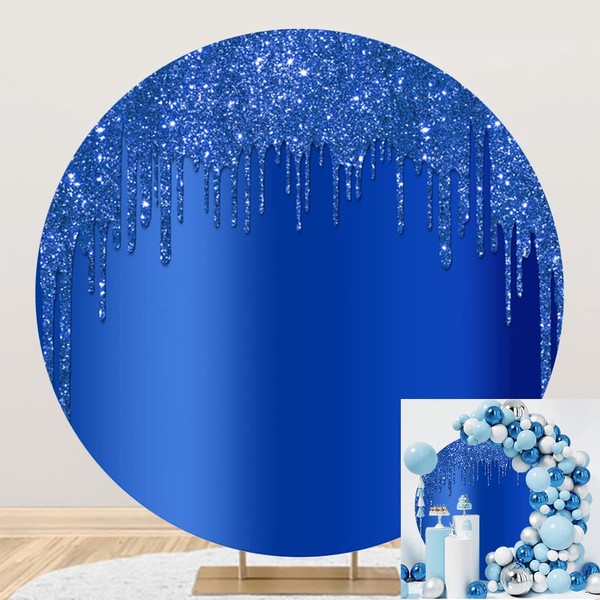 OERJU 7.2x7.2ft Royal Blue Glitter Round Backdrop Luxurious Blue Sequins Deluxe Drippy Photography Background Circle Backdrop Cover for Birthday Baby Shower Party Decoration Photo Booth Props