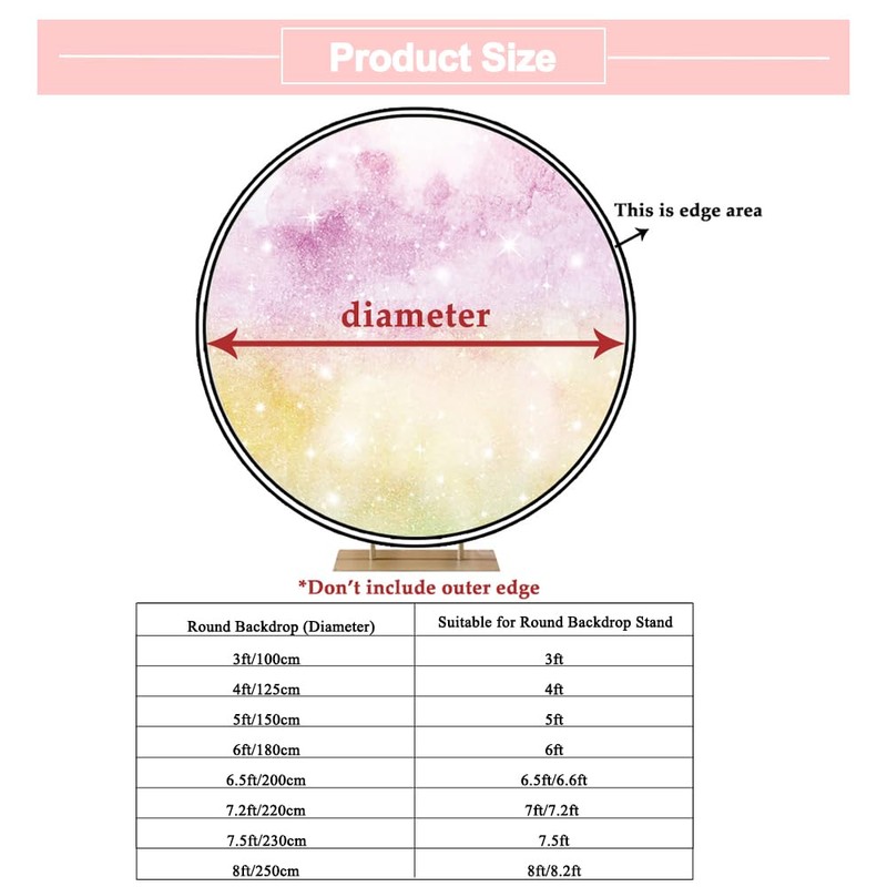 - 📷【Size&Package】: 7.5ftx7.5ft/230cm diameter, you will receive only the round backdrop, round backdrop stand is not included.