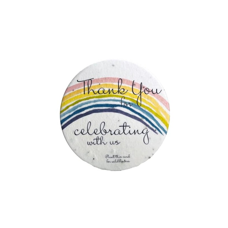 Of The Earth Handmade Paper - Seed Paper Circles for Party Favors/Goody Bags - Thank You Variations - 3.25" in Diameter - Set of 24 (Rainbow)