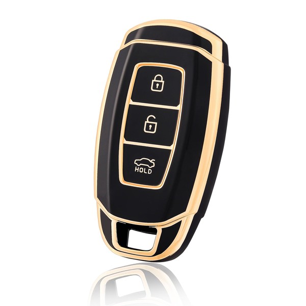 OFF WE GO Car Key Case Cover for Hyundai ix35 i10 i30 i30N Accent Santa Tucson Verna Kona ioniq Elantra Hybrid Palisade Solaris Azera Key Cover Protective Case Black Gold