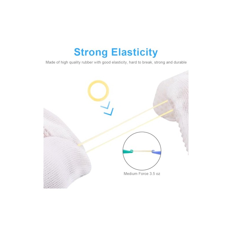 - Package Included500 pieces of 3/16 inch orthodontic braces rubber bands, medium strength 3.5 oz, also comes with 5 pieces of orthodontic rubber band placers, plenty of quantity for your use.