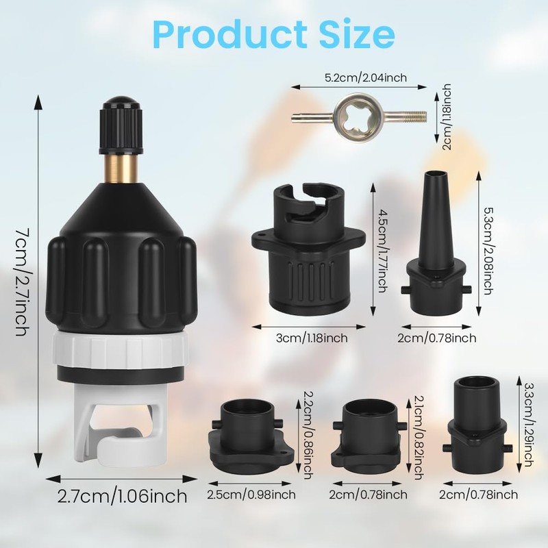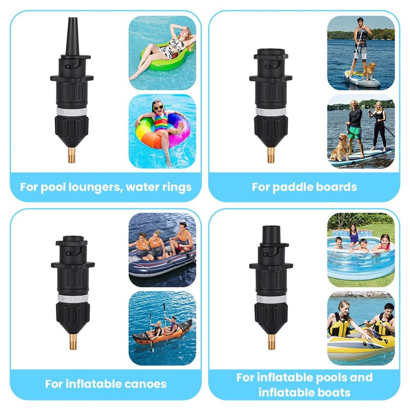 • 【Widely Used】Our SUP valve conversion head set has 4 different types of inflation nozzles, suitable for various kayaks, inflatable beds, surfboards, paddle boards, canoes, kayaks, swimming boats, etc., which is a great supplement for your outdoor activities.