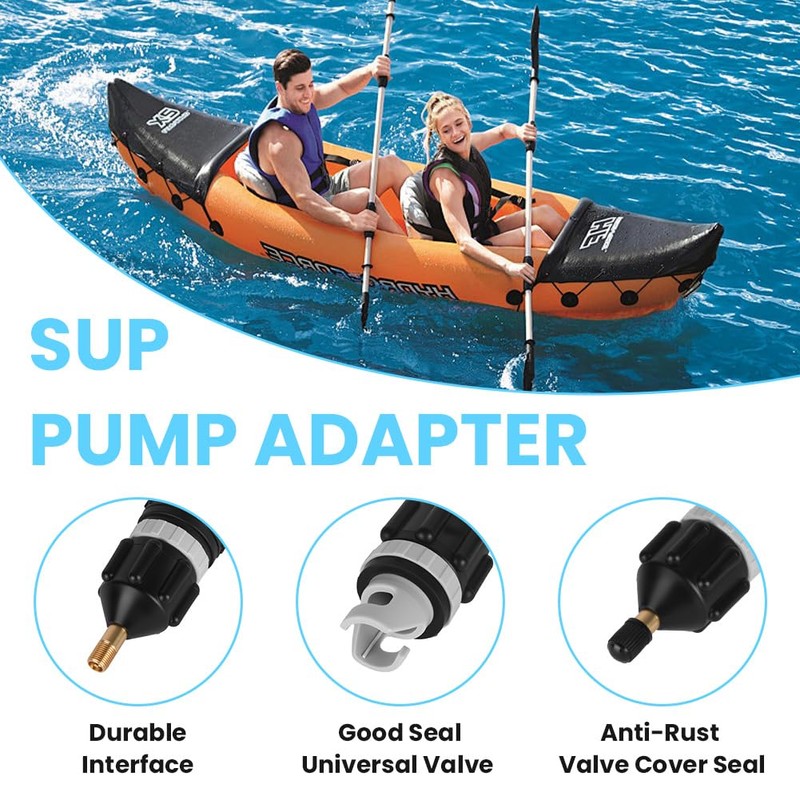 The SUP air pump adapter makes the air pump compatible with your boat or inflatable board.
