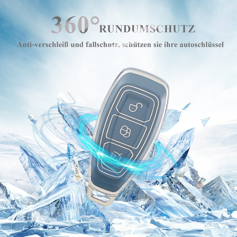 OFFCURVE Car Key Case Key Cover TPU Car Key Protective Cover 3 Buttons for Ford Fiesta Focus Kuga Fusion Mondeo Ecosport Explorer Edge Ranger C-Max