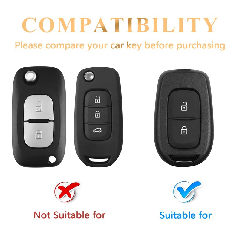 - 【Compatibility】Car key case compatible with Renault Twingo 3, Clio 4, Scenic, Master, Laguna, Symbol, Megane, Kwid, Verkehrs, Trafic, Captur, Kadjar, Koleos; Dacia Logan, Duster, Dokker, Sandero Stepway 3, Spring EV Electric.(Please compare your key case with the picture before buying! And does not include the key)