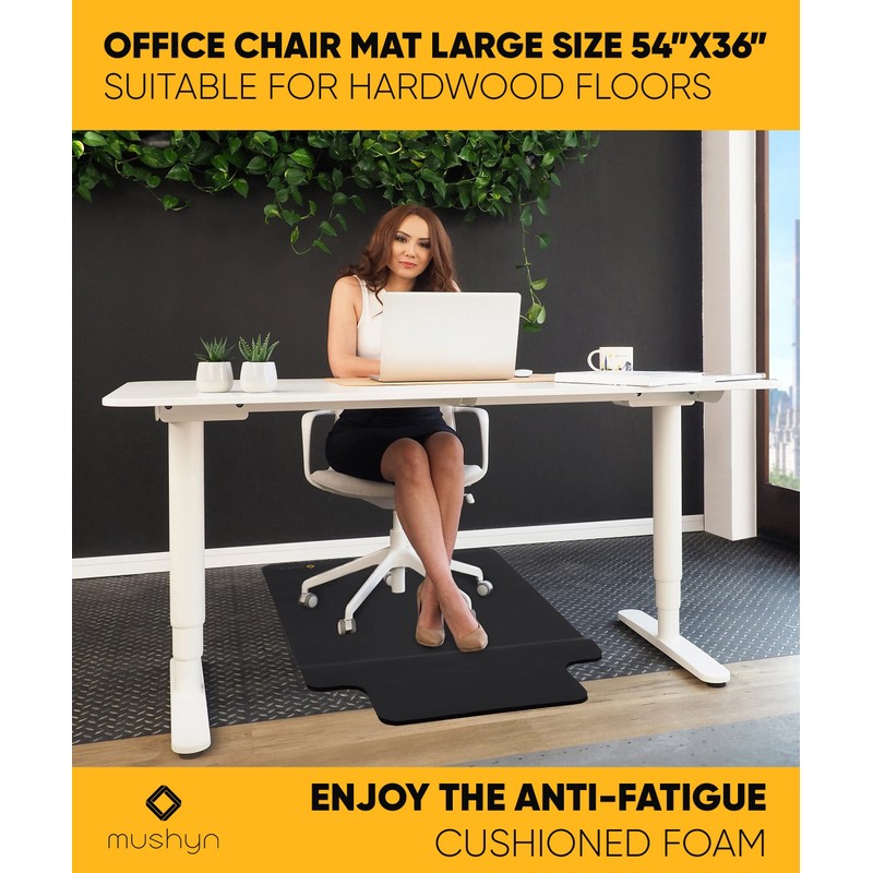 - Ergonomic Comfort & Posture Support - Experience superior comfort and improved posture with the Mushyn office chair mat featuring an anti-fatigue footrest. This versatile desk chair mat for hardwood reduces pressure and fatigue, providing perfect support for sitting and standing positions