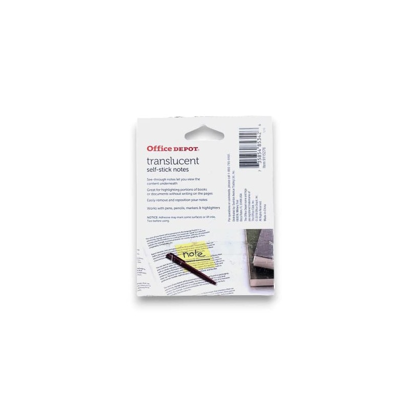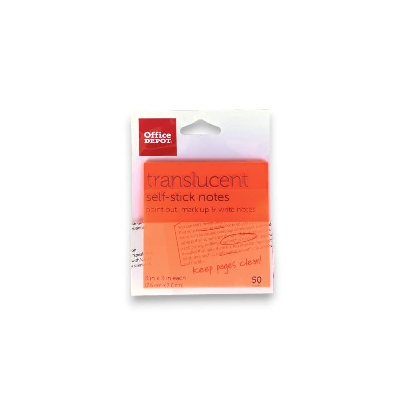 Office Depot Translucent Sticky Notes, 3"x3", 50-Note Pad (Orange)