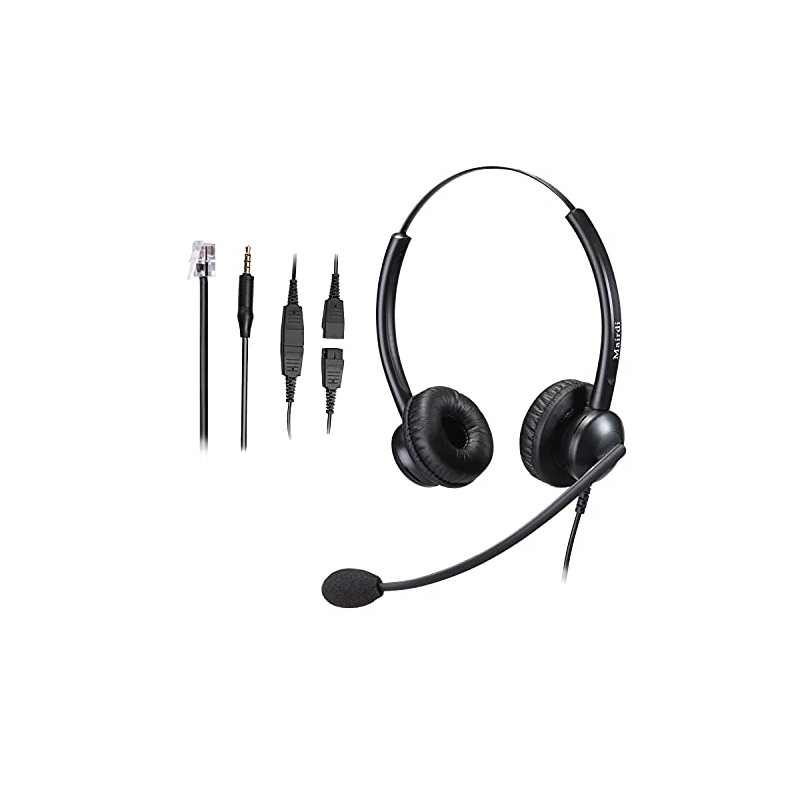 - SUPER COMFOTABLE HEADSET: RJ9 headset with super soft protein leatherette ear cushion,user-friendly hygiene, adjustable headband to fit for different head sizes, ear cover rotatable,no pain no push to ears for all day long wearing. Microphone arm 330 degree rotable for wearing mic on either side, super call center headset for telemarketing and offices.
