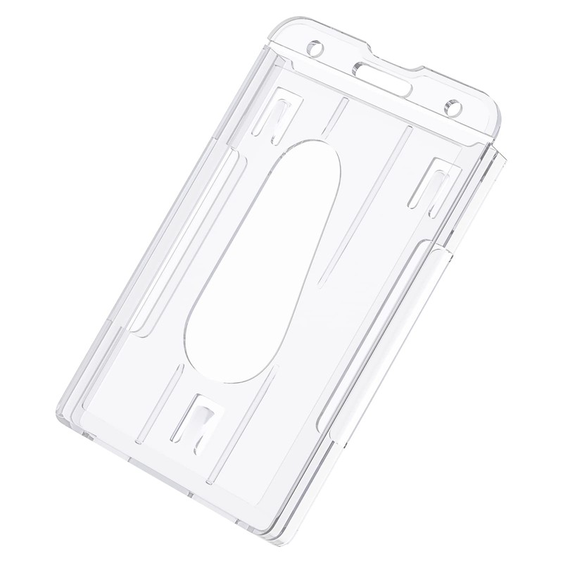 Office Product Pawfly 2 Pack Vertical 2-Card Badge Holder with Thumb Slot Hard Transparent PC Case Protector for Office School IDs Credit Cards Driver’s Licenses and Passes