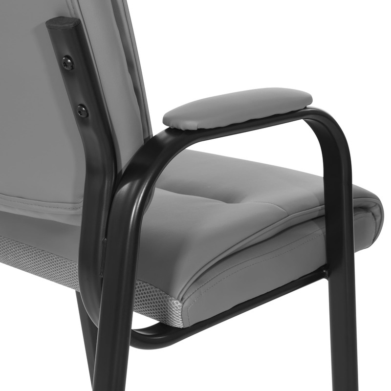 Office Star FL Series Faux Leather Guest Office Chair with Black Finish Frame, Charcoal Grey