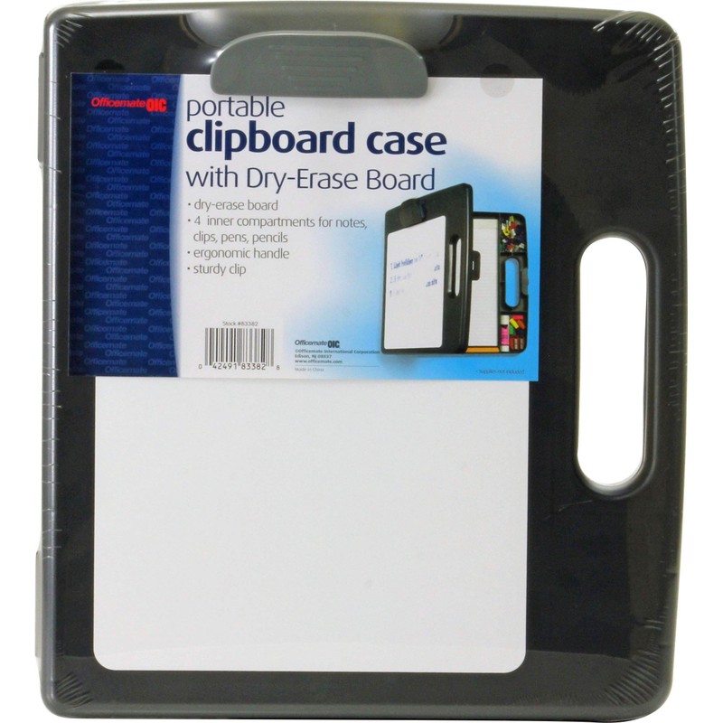 Officemate Dry Erase Portable Clipboard Box features a surface that is perfect for teachers and coaches. Clipboard box comes with four storage compartments that can accommodate paper, pens, pencils and other supplies. Handle is convenient to carry. Sturdy plastic clip and storage compartments make this a great box to carry everything together without any extra effort.