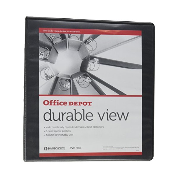 OfficeMax Durable View Binders with Round Ring 1-1/2", Black