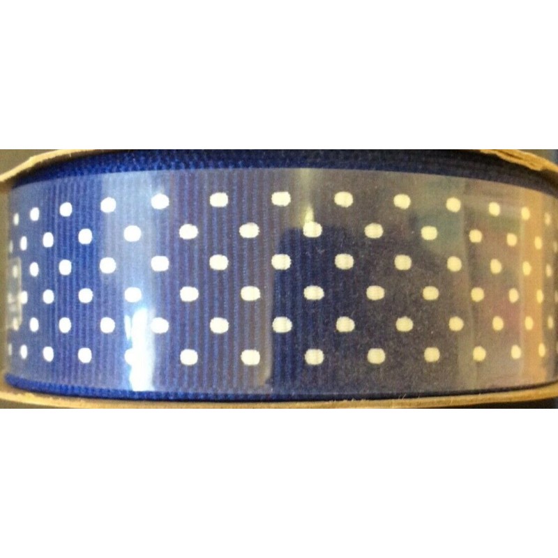 OFFRAY #37185 - BLUE GROSGRAIN SWISS DOT -7/8"W X 9 FT SPOOL
