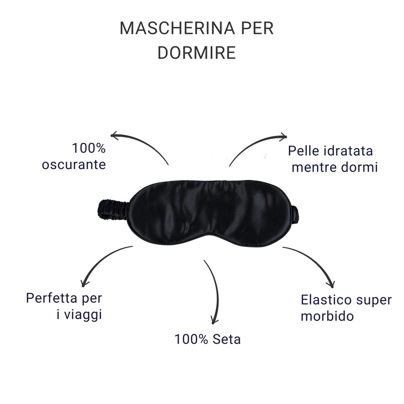 OFFTOPIC® Schlafmaske aus 100% reiner Seide, Schlaflosigkeitsstopp, verbesserte Schlafqualität, Reisezubehör, Oeko-Tex-Zertifikat, maschinenwaschbar, Schwarz