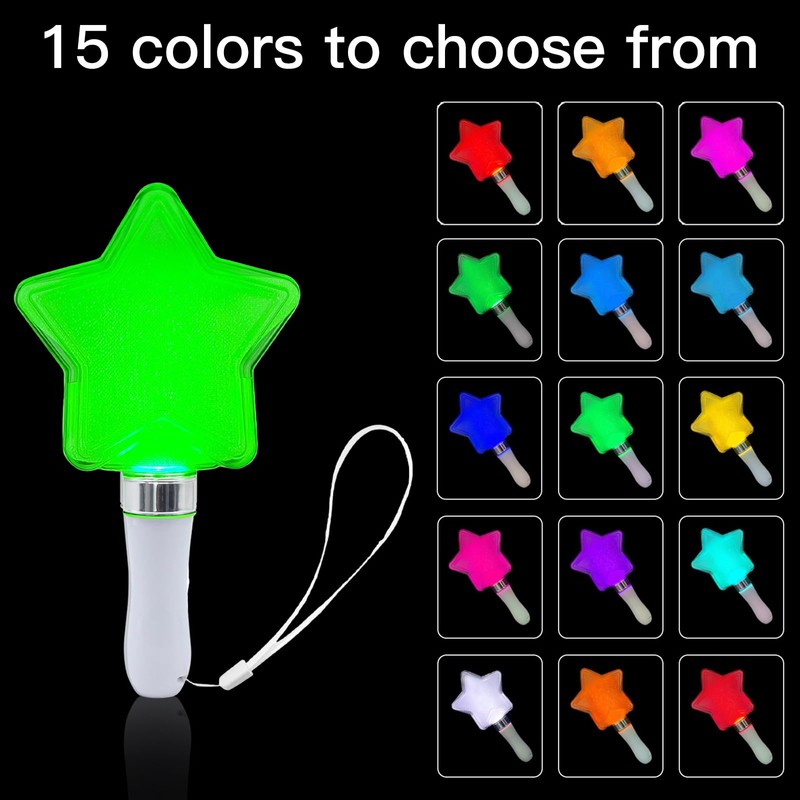 • Made from sturdy Acrylic and ABS materials, Every glow sticks with 15 colors alternately blink. Flashing star wands for bright sensory lights effects that look their best after dark.