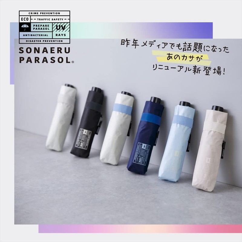 Ogawa 2023 Parasol Umbrella, For Security and Disaster Prevention, For Emergencies, Disaster Prevention, Women's, Folding Umbrella, Anti-bacterial Handle, Reflective Fabric, Heat Blocking, UV Protection, Over 99%, 21.7 inches (55 cm), 6 Ribs, LINEDROPS S