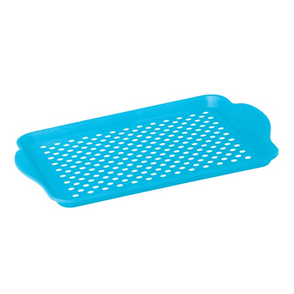 Perfect for all occasions-outdoor, poolside, picnics and more! Non skid rubber grip to help hold food and beverages in place. Made of durable BPA-free plastic. Available in assorted colors: Aqua blue, green and white. Dimension: 17.5 Inch x 11.5 inch.
