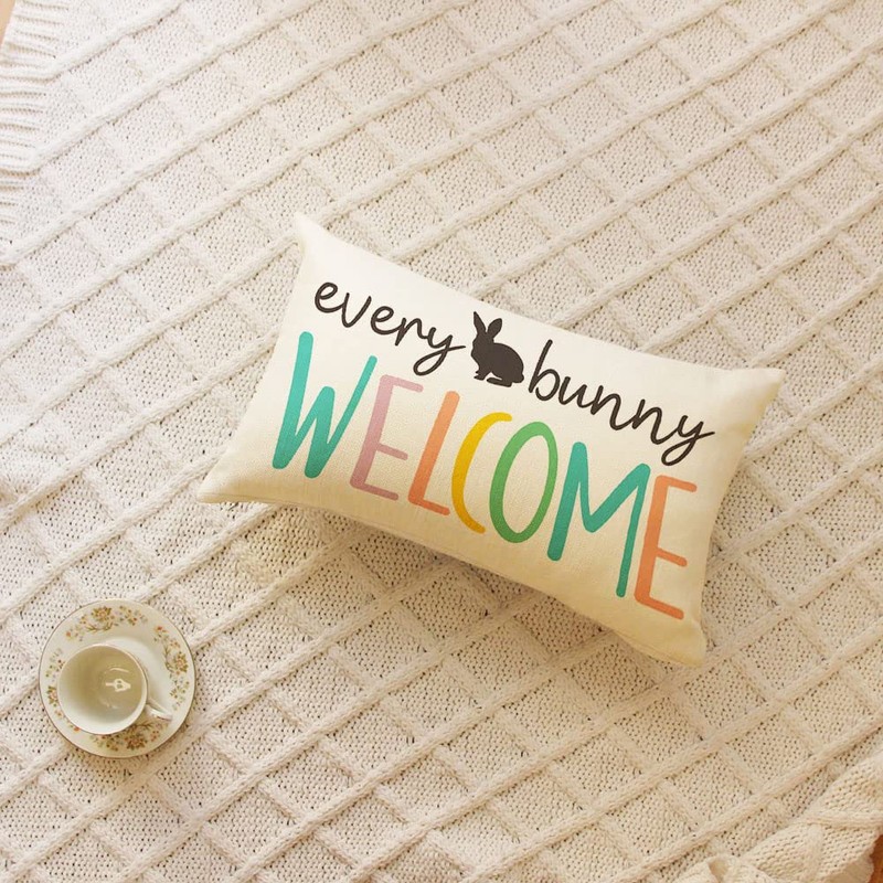Ogiselestyle Every Bunny Welcome Easter Lumbar Pillow Cover 12 x 20 Inch Rabb...