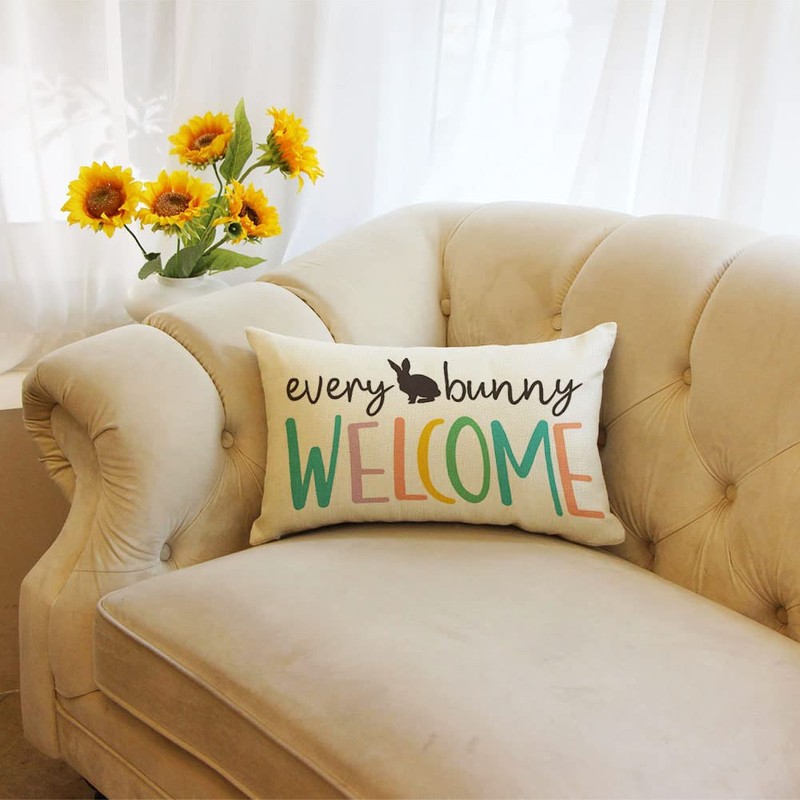 Ogiselestyle Every Bunny Welcome Easter Lumbar Pillow Cover 12 x 20 Inch Rabbit Spring Cushion Case Decoration for Sofa Couch