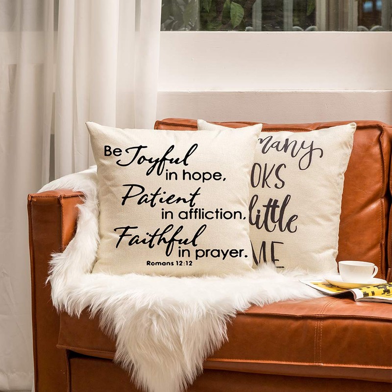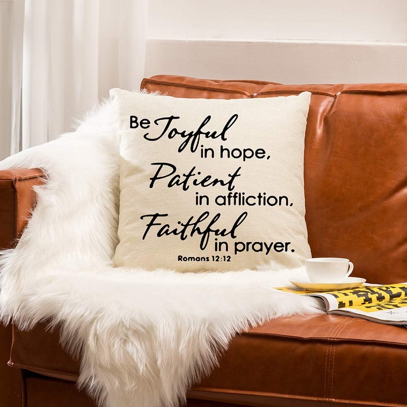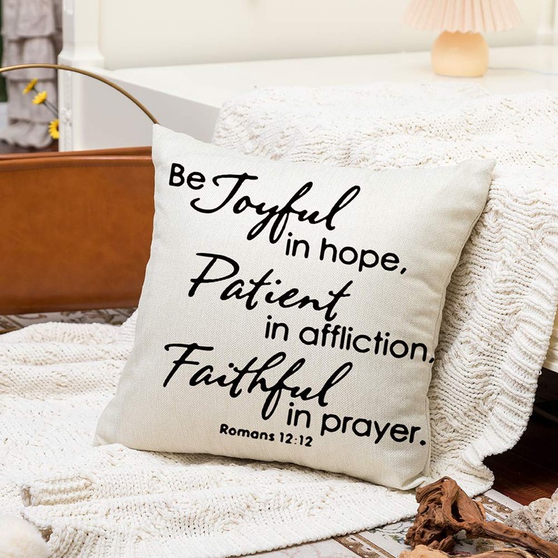 Ogiselestyle Joyful in Hope, Patient in Affliction, Faithful in Prayer Cotton Linen Home Decorative Throw Pillow Case Cushion Cover for Sofa Couch, 18" x 18"