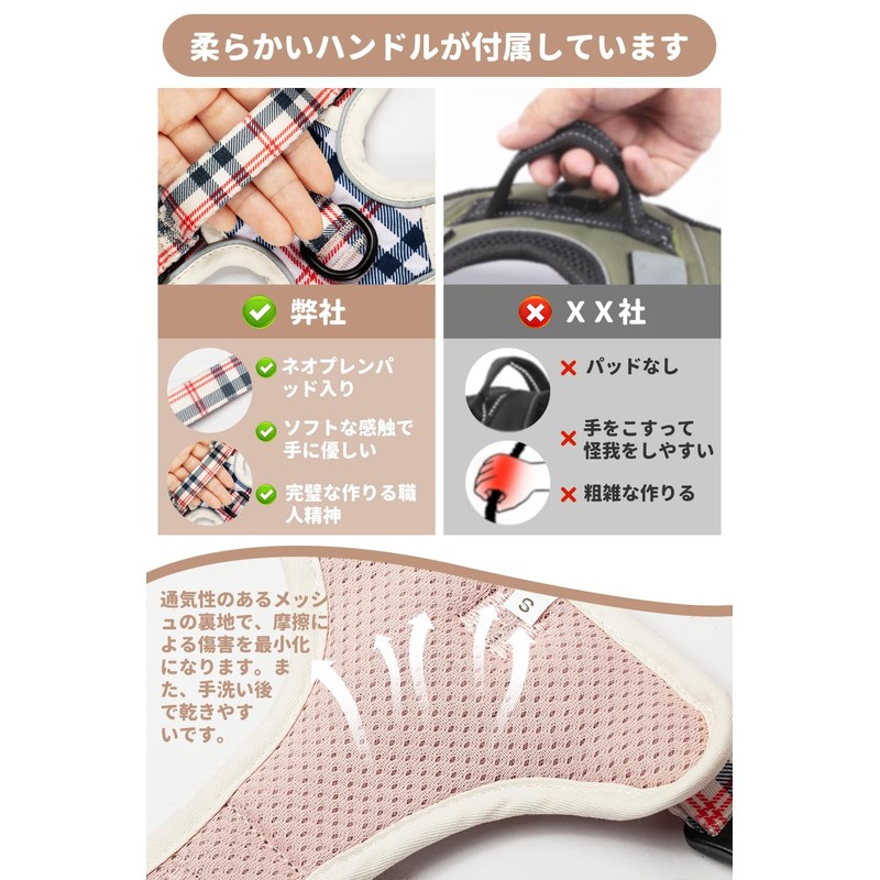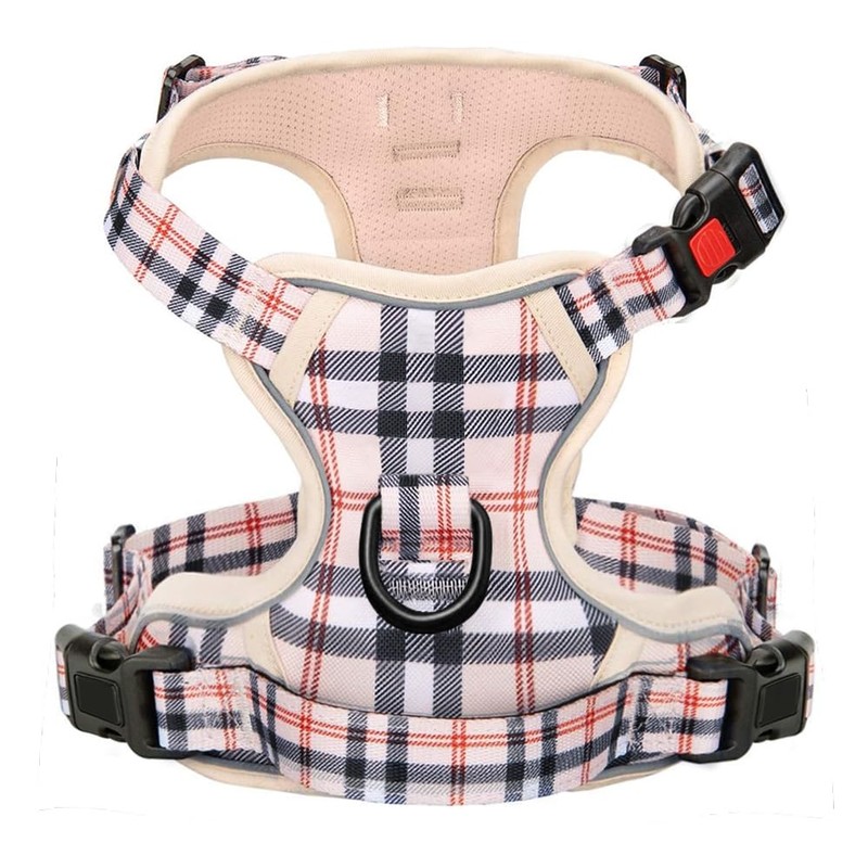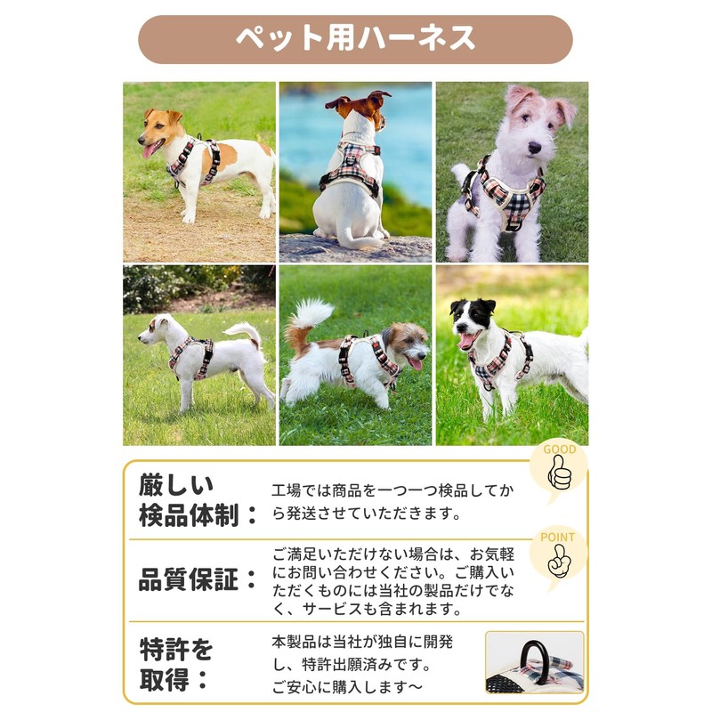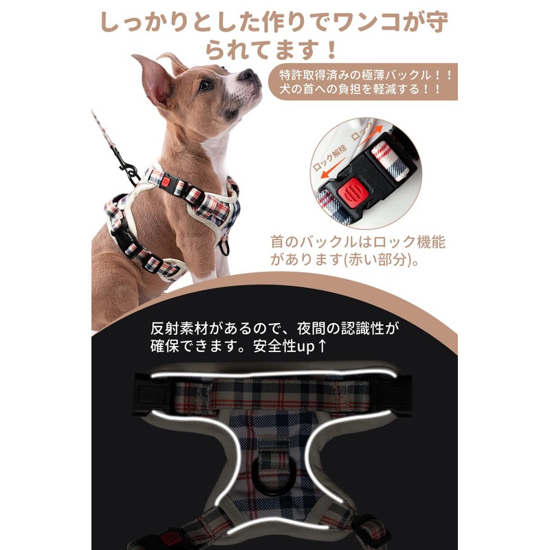 【最新型 犬ハーネス】OGURIYA 引っ張り防止 犬用胴輪 調節可能 夜間反射 小型犬/中型犬/大型犬 通気性 メッシュ 簡単着脱 おしゃれ 安全 咳き込み軽減 しつけ用 訓練 歩行補助 散歩 可愛い(カーキチェック柄,S)