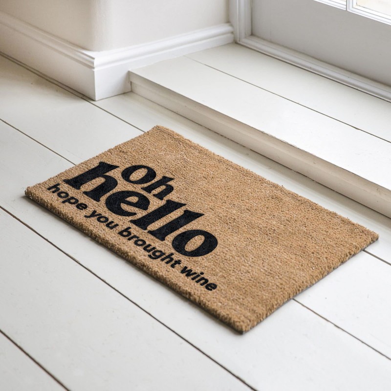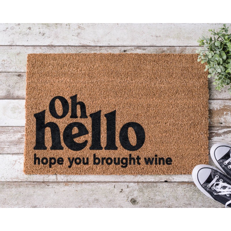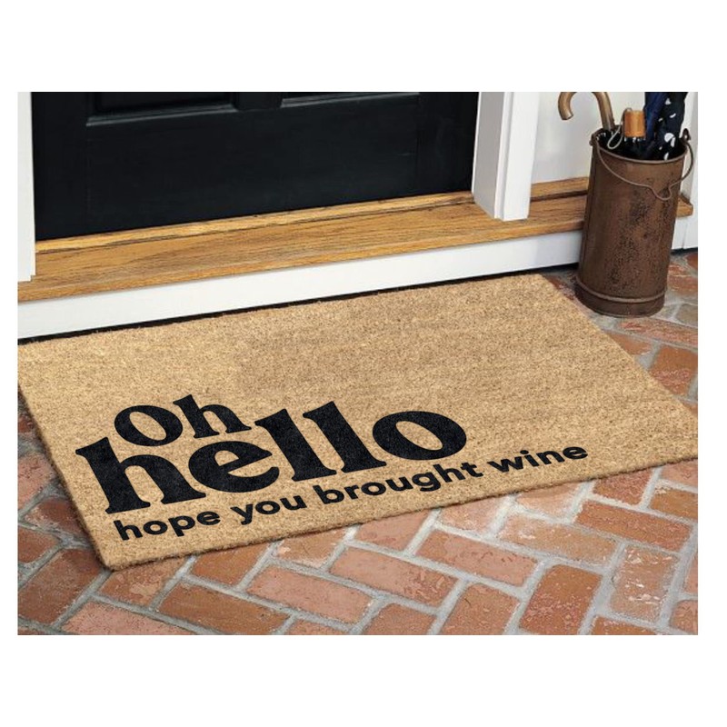 Oh Hello Hope You Brought Wine Coir Coconut Husk Doormat 18x30 or 24x36 (24"x 36")
