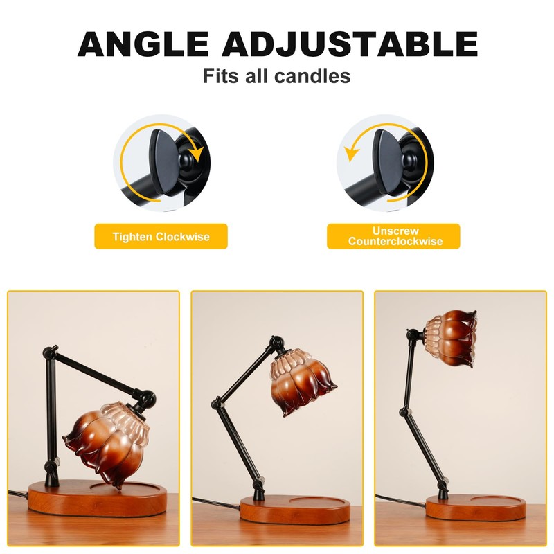 - 【3 Timing Modes & Height Adjustment】 -The candle warmer lamp has a 2/4/8H timer automatic shut-off function, so you don't have to worry about losing track of time while enjoying the fragrance, avoiding safety hazards caused by candle burning. With a simple turn of the button, you can vary the height from 13 inches lowered to 0 inches, ensuring the perfect fit for any candles size.