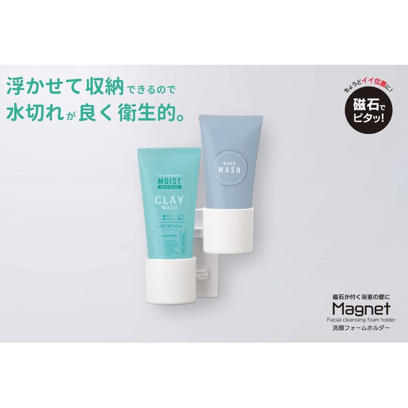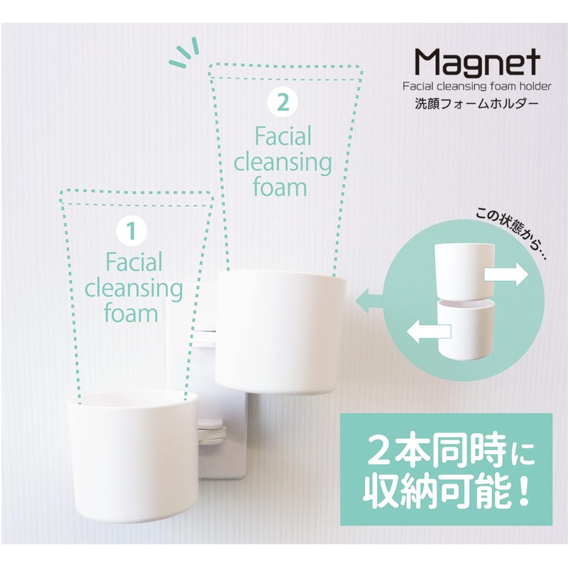 OHE Magnetic Holder, White, Length 4.1 x Width 2.2 x Height 3.1 inches (10.3 x 5.6 x 8 cm), Face Wash Foam Holder, Bathroom, Magnetic Storage