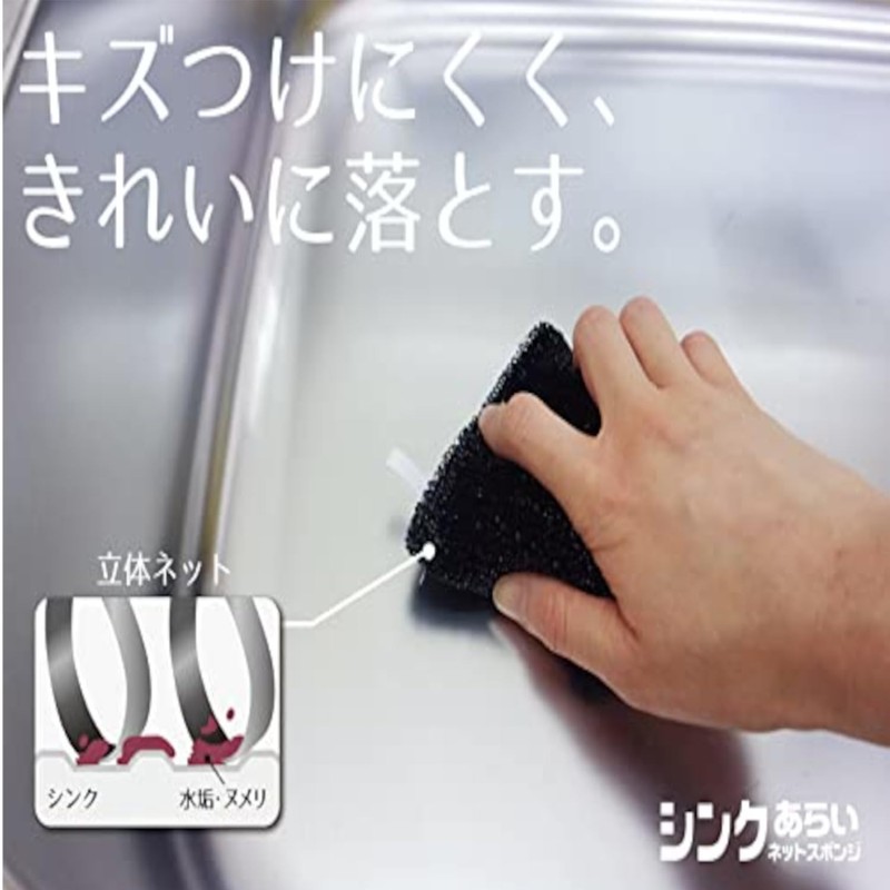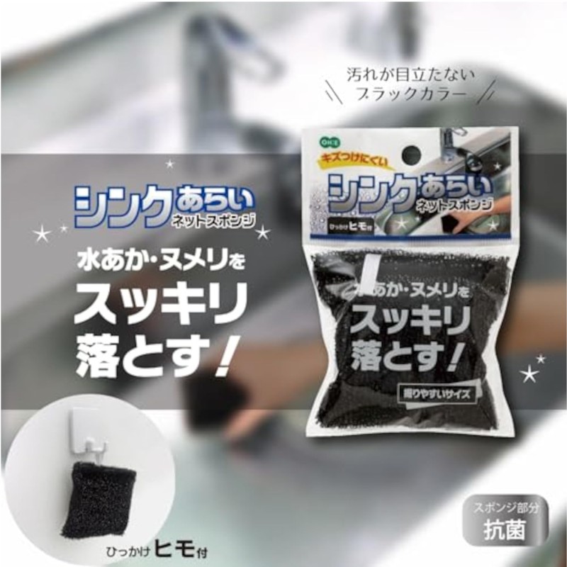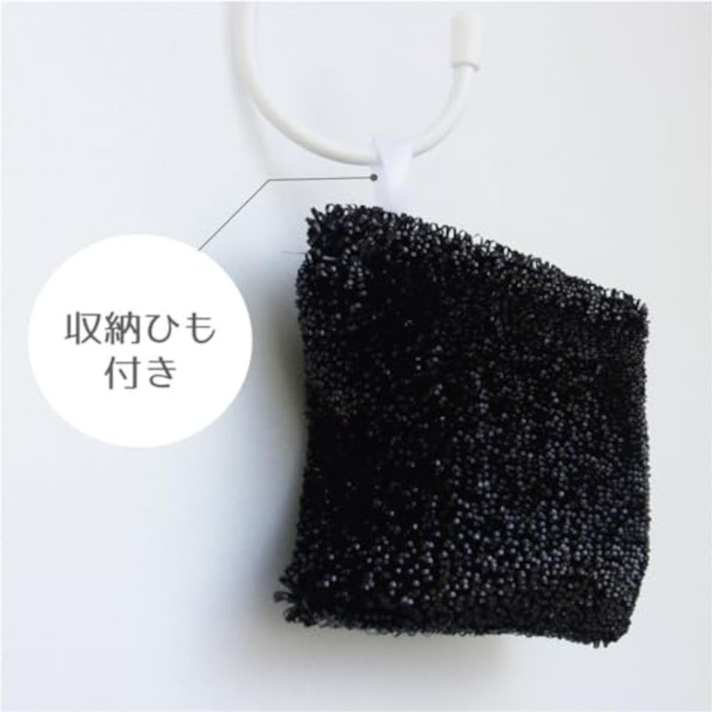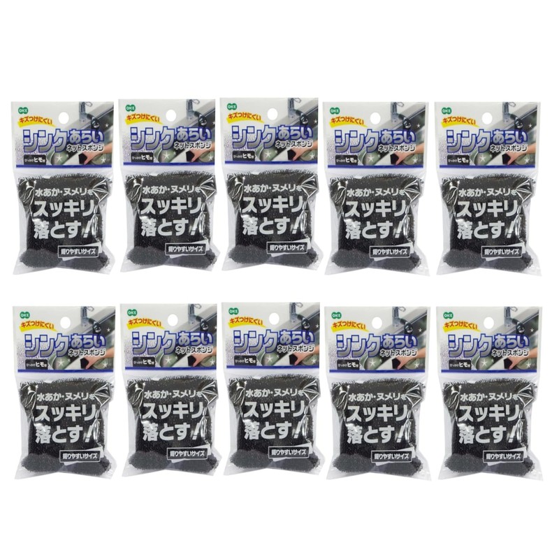 OHE Net Sponge, Approx. Length 3.5 x Width 3.6 x Height 1.3 inches (8.8 x 9.1 x 3.3 cm), Black, Kitchen Sink Washer, Antibacterial, Compact String Included, Set of 10
