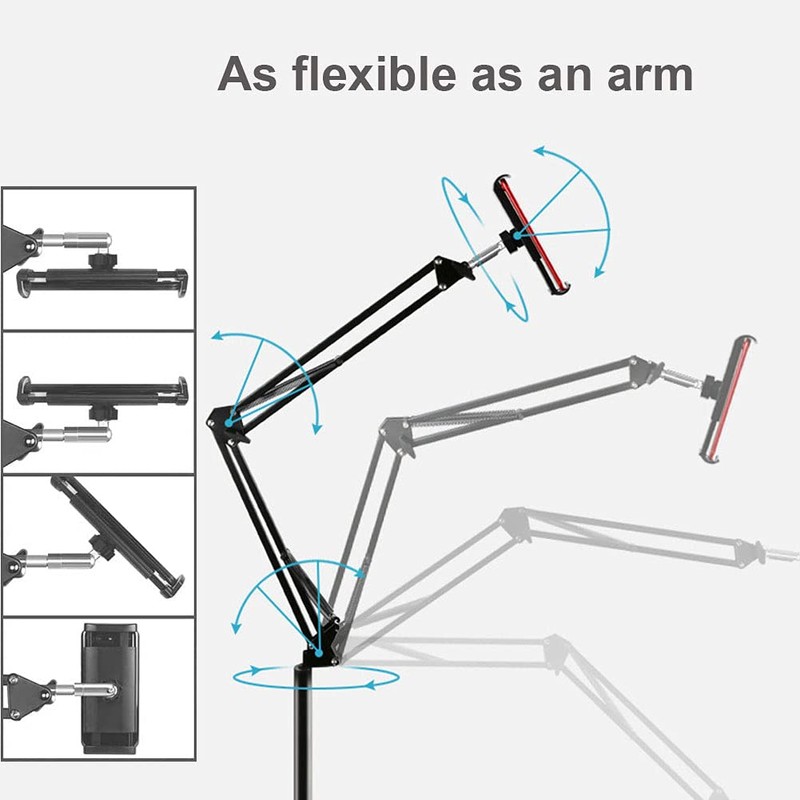 - 【Flexible】5 degrees of freedom, combined with a universal joint, making it as flexible as a real arm. Reaches a maximum height of 5.7 feet (175cm). The bracket is 360-degree rotatable to any comfortable viewing angle.