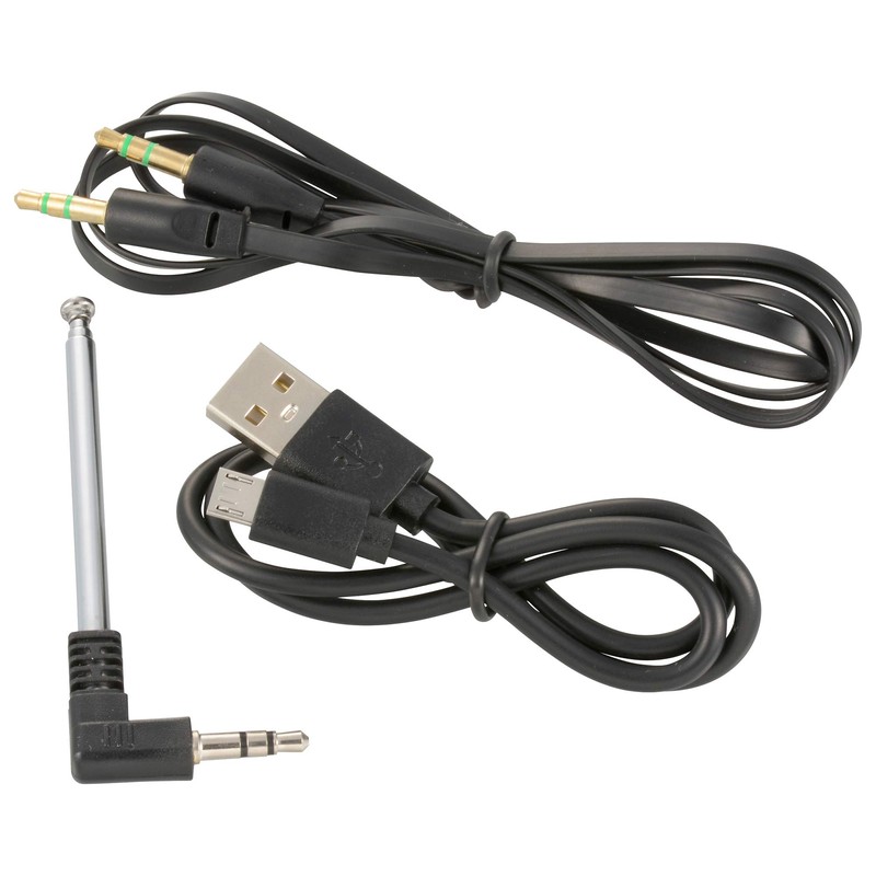 - ■ Accessories: USB charging cord (microUSB to USB), φ3.5mm external audio input cord, detachable FM rod antenna, instruction manual with warranty card (Bluetooth); Communication method: Bluetooth standard Ver.4.2 ■ Profile: A2DP, AVRCP ■ Output: Class 2 ■ Maximum transmission distance: Approx. 32.8 ft (10 m) ■ Usage frequency band: 2.402 GHz - 2.4802 GHz GHz (microSD card)