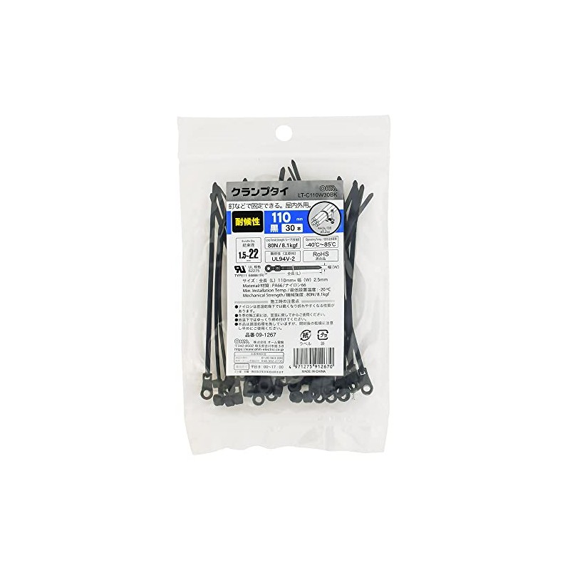 Ohm Electric LT-C110W30BK 09-1267 OHM Zip Tie Clamp Tie Weatherproof Outdoor 4.3 inches (110 mm), Pack of 30, Black