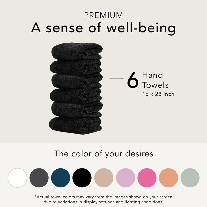 Ôhm - Terry Cloth Towel Set - 6 Extra Fluffy & Soft Hand Towels - 16x28 Inch - for Home, Hotel & Spa Turkish Cotton & Oeko-TEX Certified - Black
