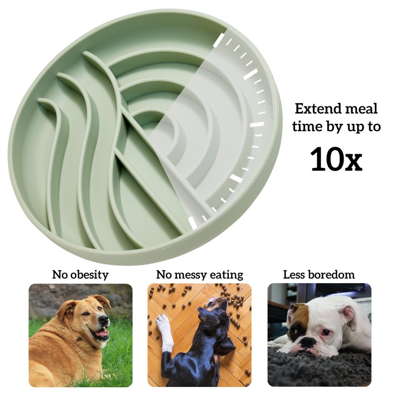 • Clean the slow feeder with water or dishwasher is convenient. Unlike plastic and ceramic bowls, the silicone bowl is hard to break and does not deform easily.