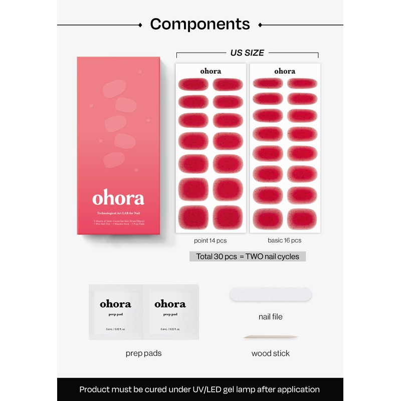 ohora ohora Semi Cured Gel Nail Strips (N Jelly Berry) - Works with Any Nail Lamps, Salon-Quality, Long Lasting, Easy to Apply & Remove - Includes 2 Prep Pads, Nail File & Wooden Stick