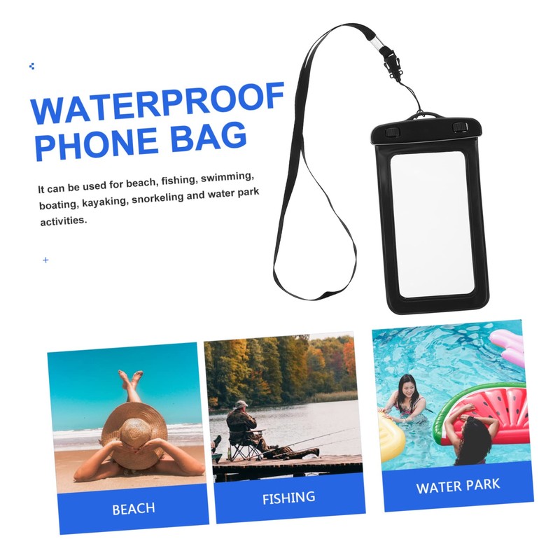- Phone bag: it can be used for beach, fishing, swimming, boating, kayaking, snorkeling and water park activities.