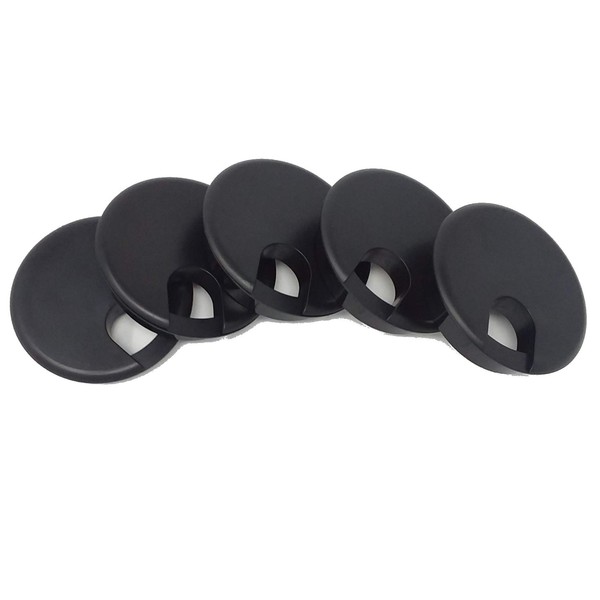 OHPROS Desk Grommet w/Cover for 2.5 Inch Hole. Black Plastic 5 Pack for Cable Management