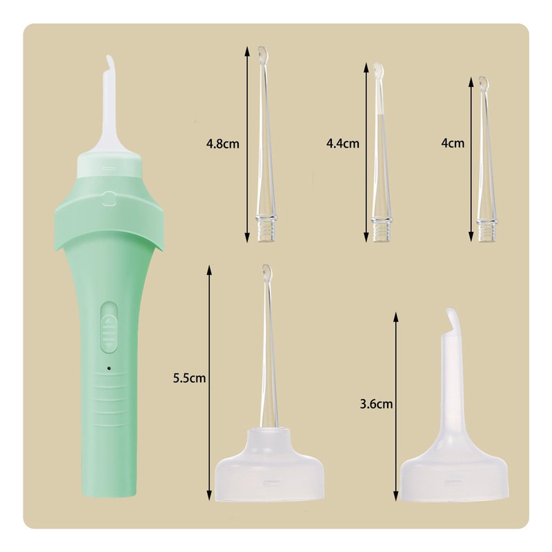- Komfortabel und Sicher: Dieser ohrenschmalz sauger verfügt über ein ergonomisches design, um sicherheit und komfort während des gebrauchs zu gewährleisten. Das weiche kopfdesign kann nach innen gedrückt werden, um gefährliche bereiche nicht zu berühren, und das ohrenschmalz entferner sauger schützt ihren gehörgang effektiv.