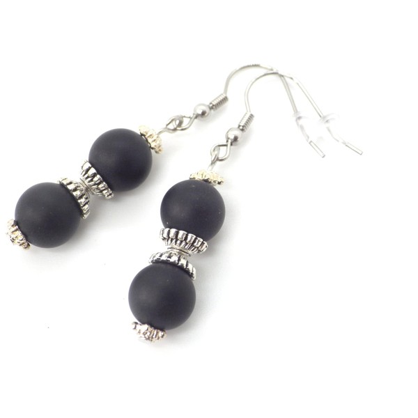 Ohrringe aus schwarzen Achatperlen und tibetischen Perlen