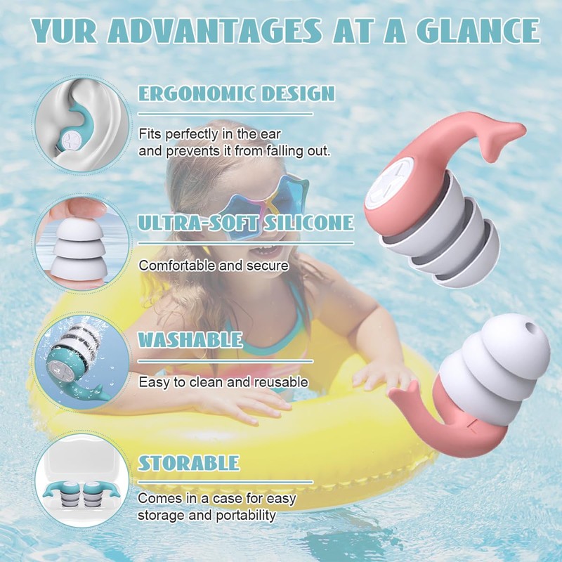 - 【Einfach zu Tragen】Unsere schwimmohrstöpsel für kinder sind der struktur der menschlichen cochlea nachempfunden und verfügen über ein einzigartiges dreiseitiges design, das eng an der innenseite des ohrs anliegt und sich gehörgängen unterschiedlicher größe anpasst. Sie lassen sich leicht einsetzen und gehen nicht so leicht ab, sind sehr angenehm zu tragen, auch den ganzen tag über, und verursachen keinerlei unbehagen, mit einer ergonomischen.